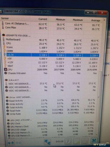 Разьемы и сборкаТестирование исправного БП. Тут описывать особо нечего, сверка будет производится не вольтметром, а программным способом, с помощью HWiNFO64. Мамка исправная, и датчики не косячат. Хочу заметить, что при подключении БП к питанию вместе с тестером, на блок питания подается сигнал о включении, и он, собственно, включается. Так что замеры тестер производит при включенном БП.Допуски: