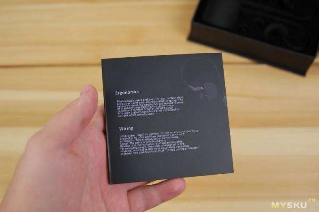Под оберткой притаился черный ларец. Внутри него оказались наушники, три пары силиконовых насадок разного размера и инструкция, которая по совместительству является гарантийным талоном. Как видите, все скромно, без излишеств.
