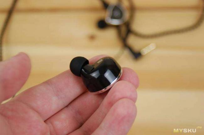 Насадки изменились лишь в одном — уменьшился диаметр отверстия, и как вы помните, в первой версии после замены насадок — менялся звук. Блок управления гарнитурой стал чуть меньше, в остальном кабель не меняли. Если кто-то всё же не читал первый обзор, я скопирую описание, всё же нужно рассказать хоть что-то. Провод здесь плетеный, приятный, именно такое определение ему подходит больше всего. Почему именно приятный? Он мягкий, легкий, он не запоминает форму и не запутывается, всё как надо. Микрофонного эффекта я здесь не заметил. Штекер самый обыкновенный, Г-образный, гарнитурный. Выполнен из пластика и ничем не выделяется. Есть вот такой пластиковый делитель: Гарнитурный блок из прозрачного пластика, расположен с правой стороны, висит на уровне подбородка. Две кнопки отвечают за громкость, и отдельная кнопка за воспроизведение/паузу. Кнопки немного выпирают и за счёт этого они приятны в нажатии, нажатие отчётливое, с заметным щелчком. Проверил на своём смартфоне, все стандартные комбинации здесь работают, кроме тройного клика. Дальше идут заушины, эффект памяти у них такой себе, это далеко не KZ ZS5, где можно было настроить как надо, здесь у меня так не получилось. Но подгибать их под себя я большой надобности не вижу, по умолчанию всё с ними нормально. Кабель съёмный/сменный, соединение с корпусами — 2pin коннектор. В самих корпусах разъём 2pin немного утоплен, и в него ещё нужно попасть. Корпуса в размерах не изменились и сохранили свою красивую лицевую вставку (faceplate), правда, нанесение на нём теперь выглядит иначе. А вот большая часть изменилась, поменяли покрытие (глянцевый пластик вместо софт тач покрытия). Как было раньше:Дополнительная информация В ушах они сидят точно так же, ведь размер не изменился: Корпуса не считаю универсальными, они огромны и сядут не всем, могут выпирать из ваших ушей. В остальном качество сборки неплохое. Почему такая комплектация и пластиковые корпуса спросите вы? Потому что вложились типа в «звук», а на остальном решили экономить. Давайте подведём итог, изменения в основном косметические: -глянцевый пластик на корпусах, блестящий, скользкий -новое нанесение «AS» на лицевой вставке (предположительно AAW/Shozy) -меньший диаметр отверстия амбушюр -уменьшился блок управления гарнитурой (незначительно) И ЭТО ВСЁ? Да… Не густо. Взвесил кабель отдельно: 16.4 грамма. Вес наушника с насадкой: 3.5 грамма, без: 3.2. Они очень легкие. Размер наушника: 25мм x 18 мм x 14.5 мм. Диаметр звуковода: 6 миллиметров. Нанесена разметка левого правого канала, есть одно компенсационное отверстие. Отпечатки пальцев и следы на наушниках — остаются, ожидаемо. У тебя маленькие уши? Тогда закрывай обзор. Tin Audio T2, PHB EM-023:Звук. Источники звука: Sabaj DA3 (110$), Daart Canary (260$), Weiliang Audio (45$), Creative X-FI HD (3 тысячи рублей на авито), плеер: Xduoo X3 (по акции стоил 50$). Что у нас по начинке: один 10-ти миллиметровый динамический драйвер. Этот драйвер не такой, как у Hibiki, его взяли из модели Hibiki Special Edition (130$) и поместили в версию MK2, которая совмещает в себе этот драйвер и дешманский корпус дешевой версии. Наушники мне понравились (продался, дизлайк, отписка, фу). Честно понравились, я не буду давать в этом обзоре никаких рекомендаций и советов, я просто поделюсь своими впечатлениями. Буду честен, я избавился от первой версий не так давно и сравнить могу только «по памяти». По ощущениям изменилас