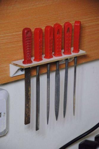 Держатели под них очень просты, а изготавливаются раздельно для каждого набора струбцин. Габариты подвески подбираются исходя из того, что ширина выступающей полочки должна быть чуть меньше расстояния между губками.