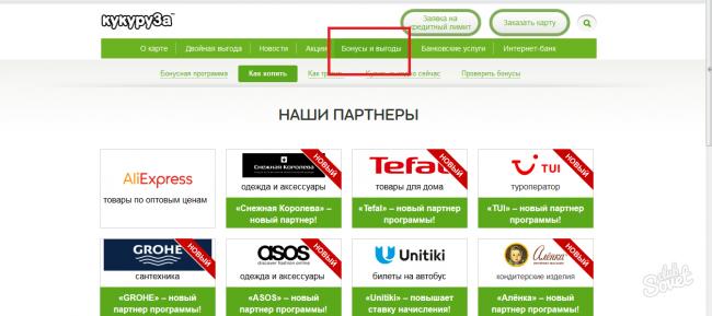 - На сайте Кукурузы выбираем вкладку о бонусах и выплатах. Перед вами появятся названия магазинов-партнеров.
